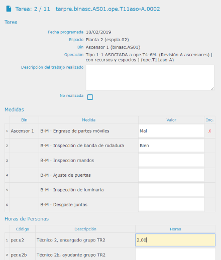 Pinchando el enlace de cada línea de tarea, podemos rellenar las medidas o
