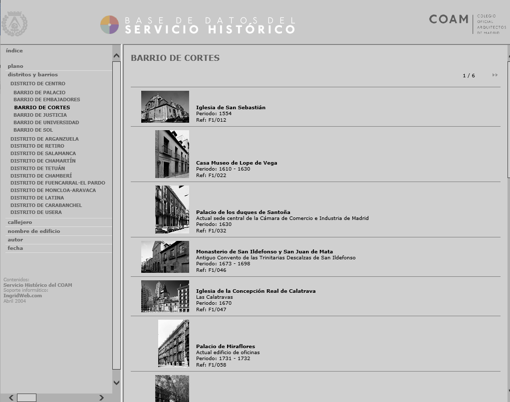 Guía de Arquitectura del COAM, cuya actualización está próxima desde Ingrid 9, con todo el contenido público de más de 4.700 inmuebles y parcelas