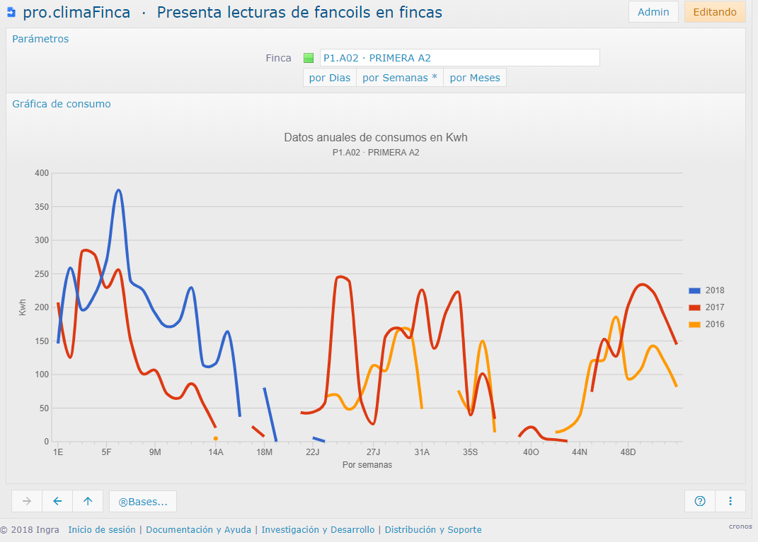Presentación de gráficas estadísticas contextuales a un concepto (todas las lecturas recogidas los últimos años), con toda la funcionalidad interactiva de las mismas: zoom, diversos tipos, rótulos, leyenda, ocultar series, exportar a imagen, etc.