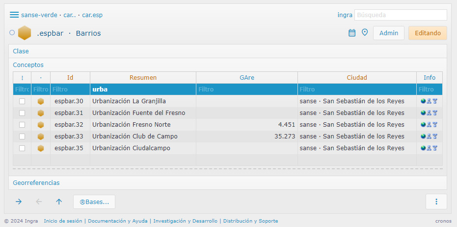 · Los de tipo referencia a un concepto o clasificación son de selección múltiple (aunque el campo no esté definido como tal) para poder filtrar por varios valores a la vez.